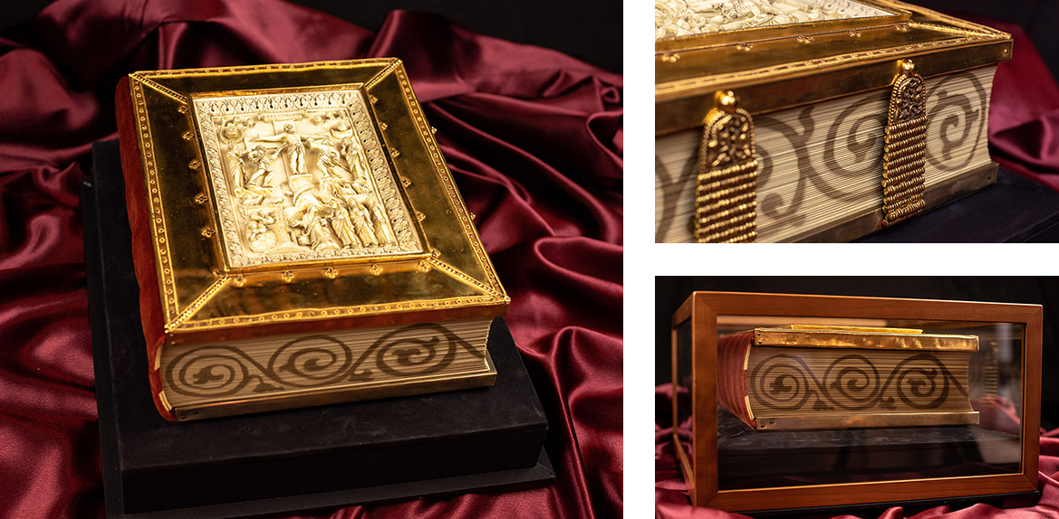 Eine der bedeutendsten Handschriften des Mittelalters wurde vom späteren Kaiser Heinrich II. in Auftrag gegeben. Die reich mit Gold und Silber verzierten Miniaturen und ganzseitigen ornamentalen Texte spiegeln Heinrichs Autoritätsanspruch als Herrscher im Hause Gottes wider. Die einmalige und vollständige Faksimilierung des Sakramentars Heinrichs II. erscheint in einer Auflage von nur 333 handnummerierten Exemplaren. Der Faksimileband umfasst insgesamt 718 Seiten im Originalformat von 29,5 x 24,2 cm. Die Blätter sind dem Original entsprechend randbeschnitten und wurden von Hand geheftet. Das Replikat des Originaleinbandes verdanken wir dem Museumsrestaurator André Glauser und von ihm beauftragten Spezialunternehmen. Die Dokumentationsmappe enthält zwei faksimilierte Blätter im Originalformat sowie eine ausführliche illustrierte Informationsbroschüre. Diese Mappe wird auf Wunsch zur Ansicht geliefert.